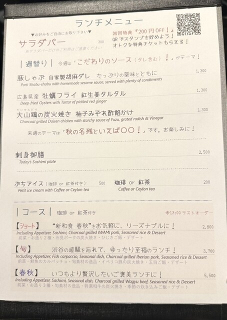 渋谷109の裏の通しさりにある和食居酒屋さん。ランチのショートコースを利用しました!