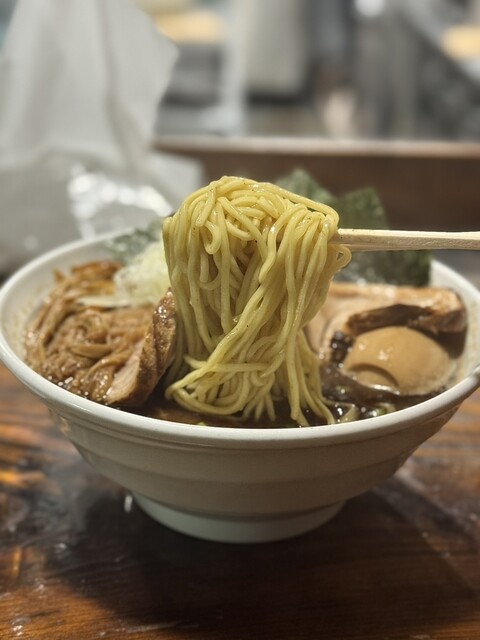 土壁やカウンター上の木の細工が印象的な小料理屋のような落ち着いた雰囲気。 両側にカウンターが背中合わせに配置された珍しい座席レイアウトも特徴。 メニューは中華そば(醤油・塩... 詳細を見る