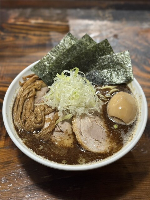 平日20時30頃に伺いギリギリ入れました 特製中華そば1300円をオーダー カツオのコクと醤油の味わいあるしっかりと したスープ、中太のもちっとした麺、具は シャキシャキで辛味の効いた刻みネギ、細め で長く程よい柔らかさと味わいあるメンマ、 しっとりとした海苔、ぷるぷるでまろやかな ... 詳細を見る