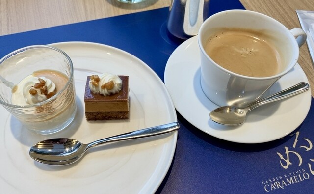 食後のコーヒーうまー^_^あまりに美味しいので、ババロアとキャラメル系のミニケーキをいただきました。コーヒーは店員さんにお願いするとお代わりOK。デザート類が好きな方には良いかも。