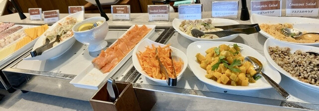 食材的にコスパはあまり良くない気がしましたが、接客サービスはさすが。ビュッフェコーナーの端にベーコンやチーズ、高級オリーブオイルなどが置いてあるので、それを上手く使うと満足度上がる食事になると思います。