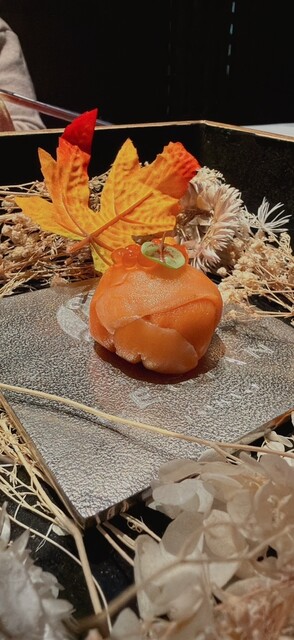 ◆サーモンと帆立のマリネ〜柿、いぶりがっこ