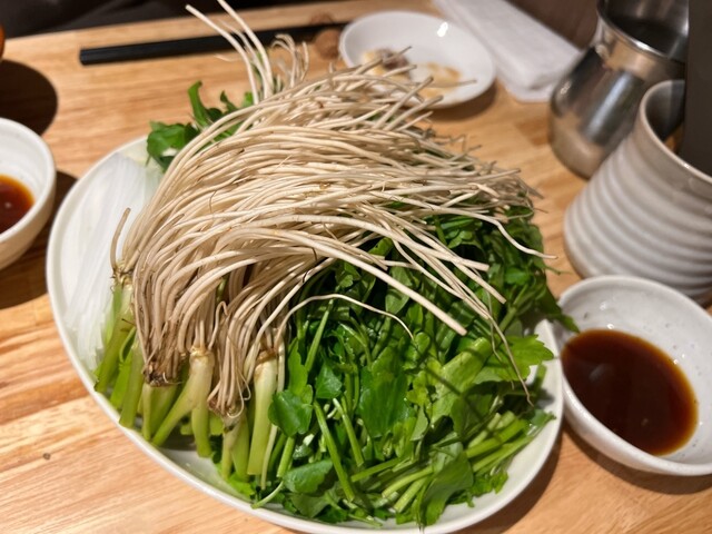 今年もおまたせしました! 長い根が特徴の秋田三関の根せりと食べる イベリコ豚しゃぶしゃぶの季節です 季節ものコース、ご堪能くださいませ さらに個室3時間ご利用でセルフ飲み放題もセットです