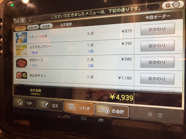卓上のタブレットで注文