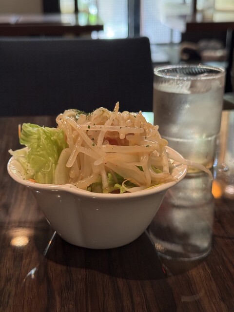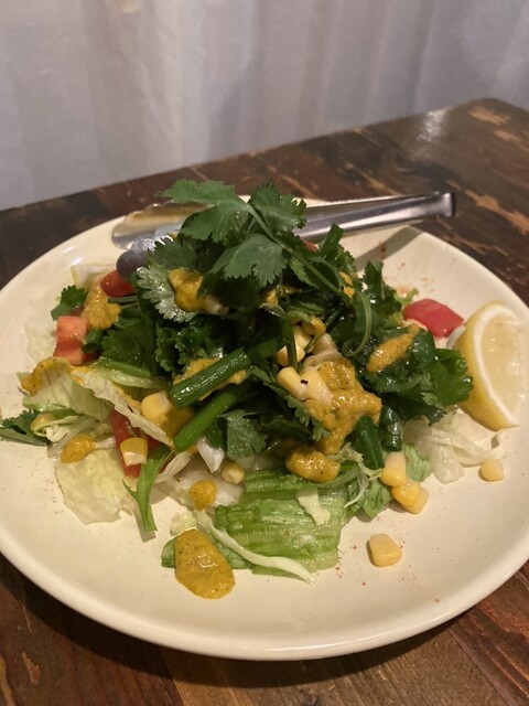 渋谷、円山町にあるエスニック居酒屋。 雰囲気も価格帯も、大学生が飲み会で楽しめそうなお店。 お通しから量がっつり。 1口サイズの鶏肉マスタード炒め、のような料理なのだが、妙においしい。 お肉はぷりぷりでジューシーだし、味が濃すぎずにちょうどよい。 小ぶりなサイズのせいか、ひょいひょいと箸がのびる。 サーモンのカルパッチョ。 大根、きゅうり、アボカド、オリーブなどいろんな野菜が... 詳細を見る