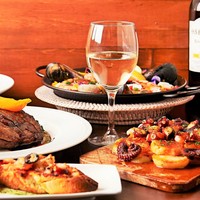 【大人気オープンテラスde乾杯!瓶ビール付】2H飲放+魚介パエリア&BIGパフェ付8品Spanishコース税込4800円(金・土・日・祝前+500円)
