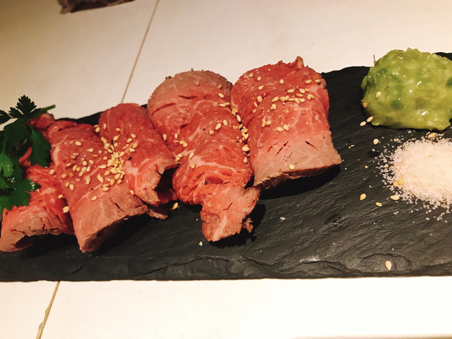 牧場直送黒毛和牛の希少部位「いちぼ」を使った和牛焼寿司は必見