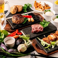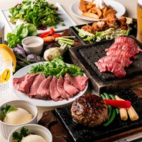 溶岩で焼く肉、炙りユッケ、厚切り牛タン、和牛寿司、名物のハンバーグ等々単品充実★飲放★駅近
