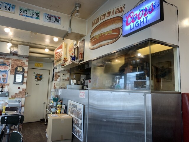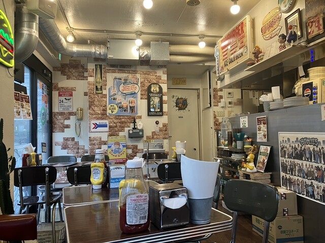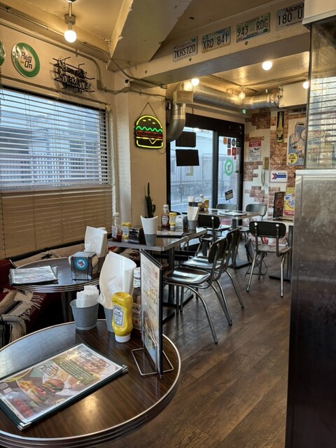 店内はアメリカンダイナーのような雰囲気で、テーブル席が数...