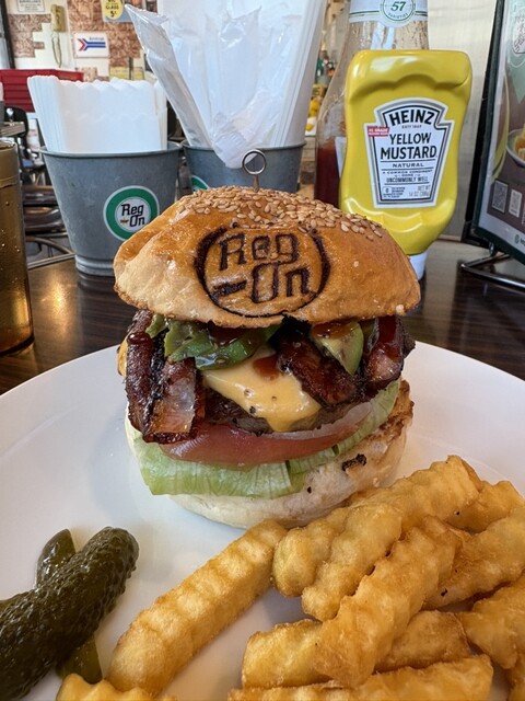写真の通り、バンズには「Reg-On」の焼印入りで見...
