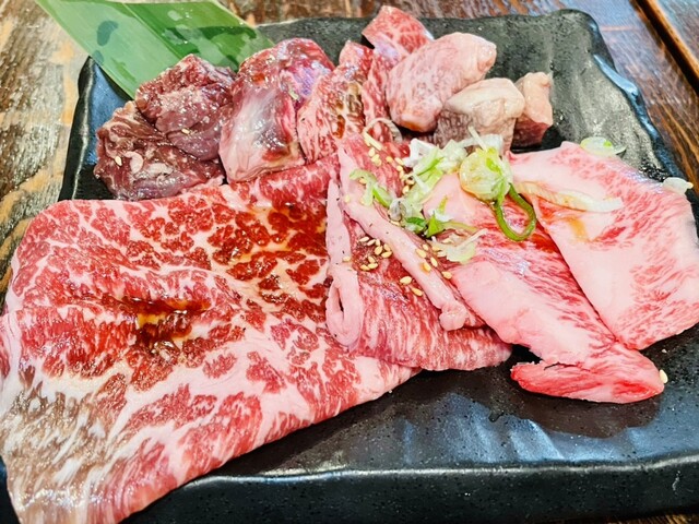 渋谷駅から徒歩3、4分くらいの道玄坂上らへんにある焼肉食べ放題へ行って来ました。 コースは3種類あったのですが一番高いプレミアム和牛極上コース5200円にしました。 まずはじめに和牛盛り合わせが来ます。 こちらは特上カルビや上カルビ、ハラミなどの盛り合わせでした。 食べ放題のお肉にいつもそこまで期待してなかったのですが、今まで食べた焼肉食べ放題と比べて上質なお肉でした。 ほかに注文し... 詳細を見る