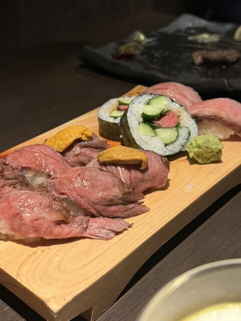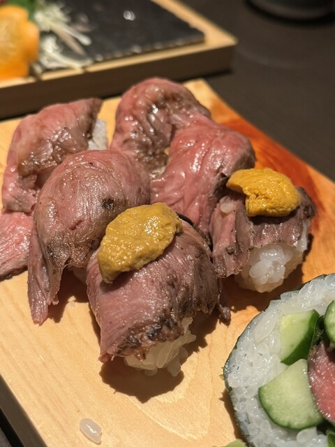 米沢牛の盛り合わせも食べたかったけど、馬刺しも食べたかったので、今回は肉寿司の盛り合わせに…