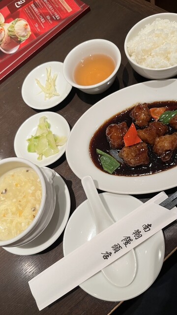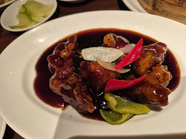 黒酢の酢豚セットと海老小籠包、上海蟹味噌入小籠包を食べました。