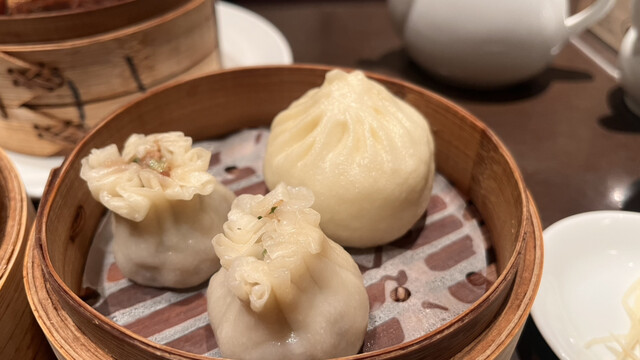 小籠包は皮がしっかりめでジューシー、熱々で出てくるからいつもテンショ...