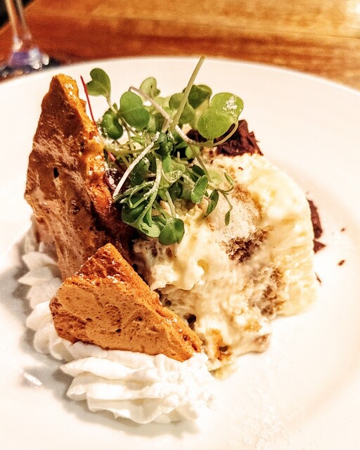 ティラミスとカルメ焼きスイートチョコを散りばめて¥950を注文。