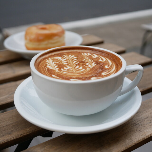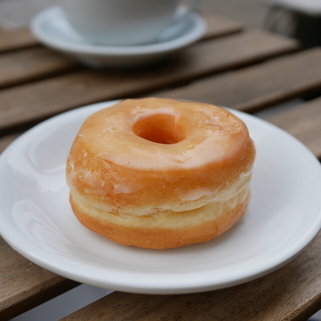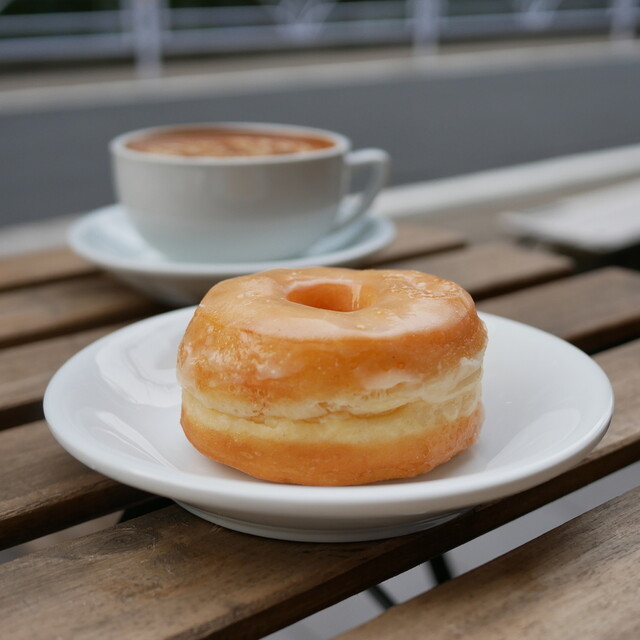 ショーウィンドウでパンを見てテイクアウト、コーヒーとキャロットケーキは店内で。