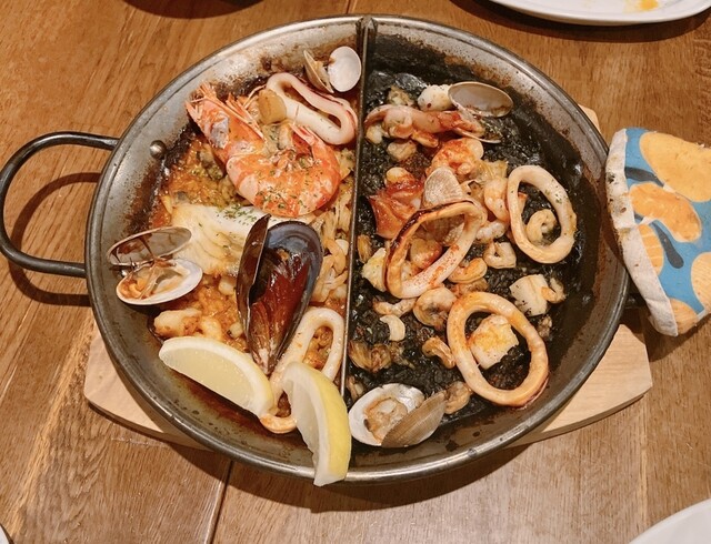 ◻️魚介のパエジャ4人前(10340円) ◻️カジョス(1210円) ◻️海老のアヒージョ(1100円) ◻️パン4つ(528円) ◻️ハーブ三元豚のパテドカンパーニュ... 詳細を見る