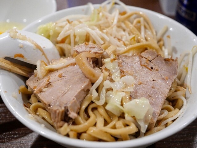 ■粉砕されたエビの殻が旨味と香ばしさをプラスし、ワシワシ麺との相性も抜群で食欲が止まりません。