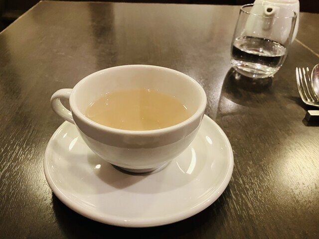 ドアを開けて入ったらテーブル席とバーカウンター? があって、でも店員さんはいなくて、わたわたしてたら階段を降りてきていただいた。