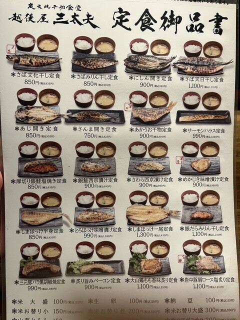 安い上にこんなにいろんな種類の焼き魚定食が食べれるのはびっくりです。秋の味覚を味わいに行きましたが、他の焼き魚にも惹かれてしまったのでまた行きたいと思います。秋刀魚定食をいただきましたが脂が乗っており...