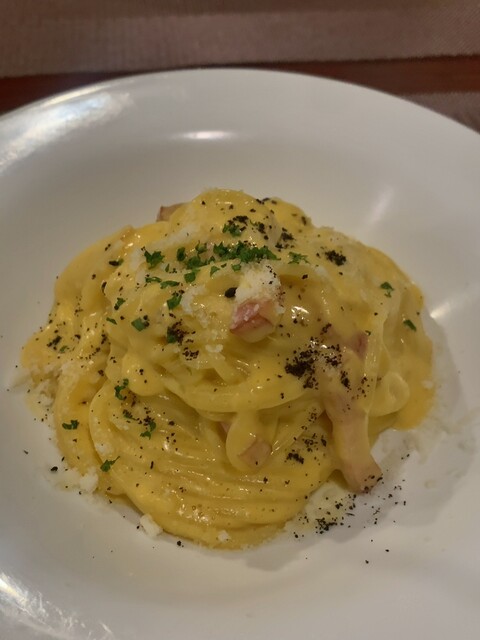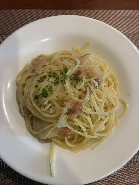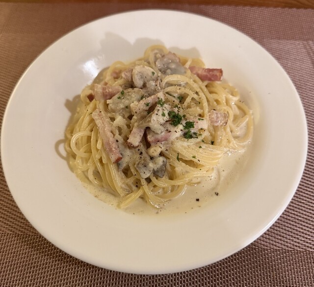 キノコとベーコンのクリームパスタを注文。