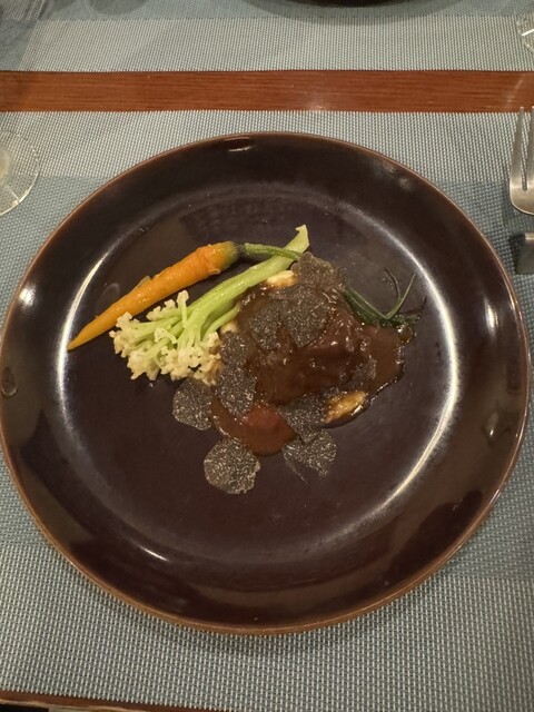 ◎牛肉ほほ肉の赤ワイン煮込みは、驚くほど柔らかく、赤ワインの旨みがしっかりと染み込んでい...