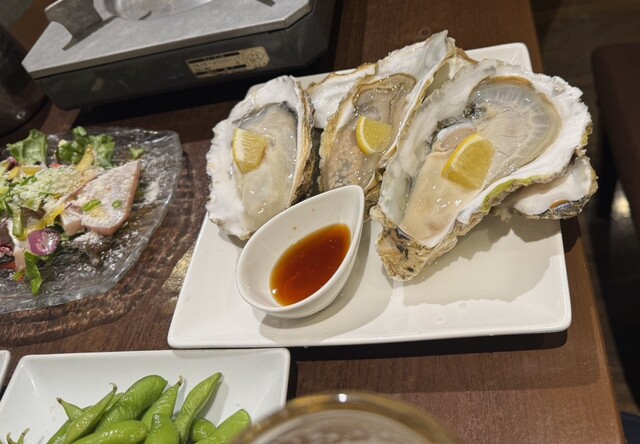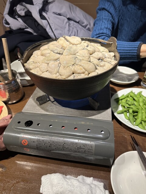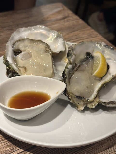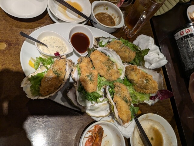 牡蠣目当てで行き、北海道はクリーミーで岩手大きかった。兵庫もまあまあ。でも期待よりは美味しくなかった。写真は岩手。