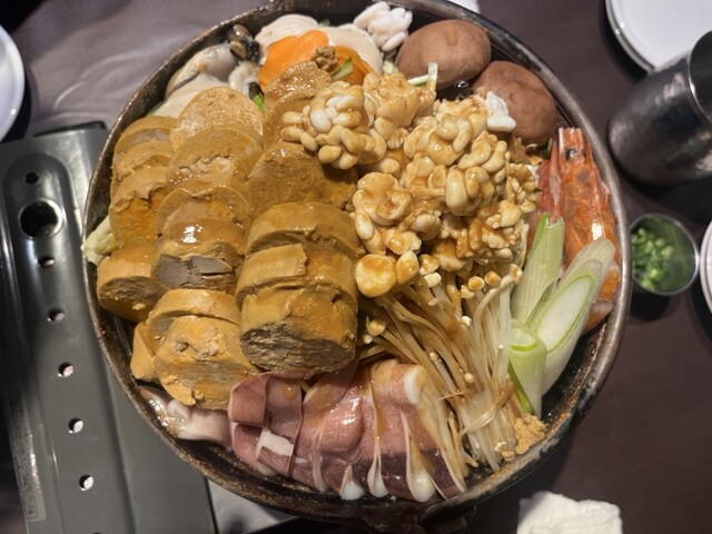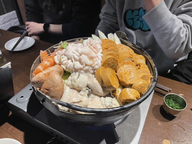寒くなったのでお鍋が食べたいということで行ってきました。あん肝、白子、牡蠣などいかにも痛風になりそうな具材がてんこもり。辛いものを注文しました。麻辣が効いていておいしかったです。サイドメニューもおいし...