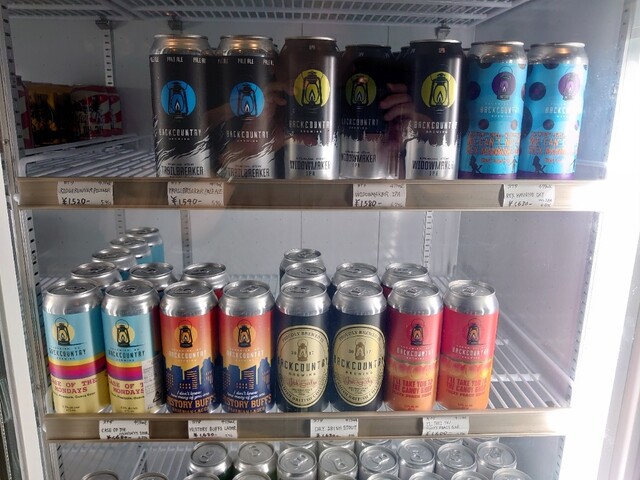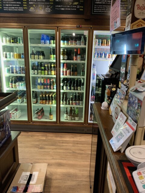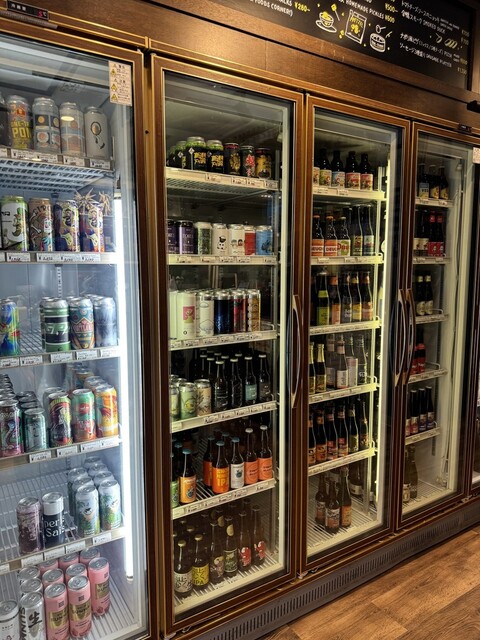 冷ケースに並ぶビールを開けてもよし、タップから注いでもらってもよし。