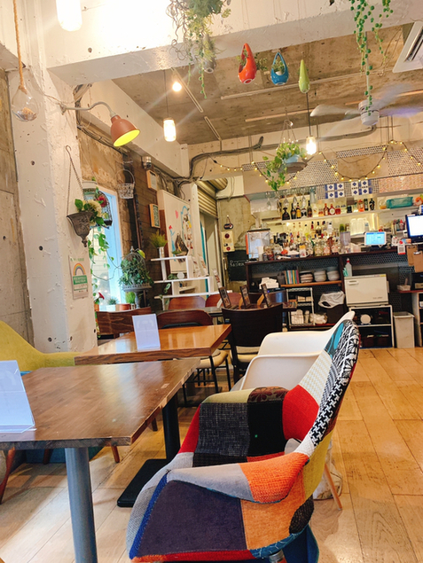 階段登っていって、少し暗くて空いてるかな?とのぞき込んでしまうんだけど、そこはおしゃれで以外にも広いおしゃんなカフェ空間