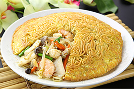 ビル1階の中華料理「梅蘭」の焼きそばは大人気! (by お店)