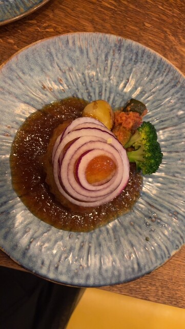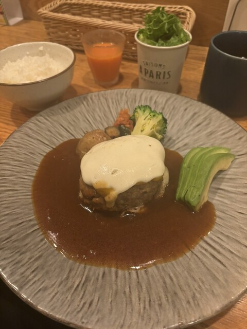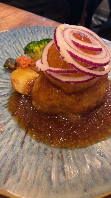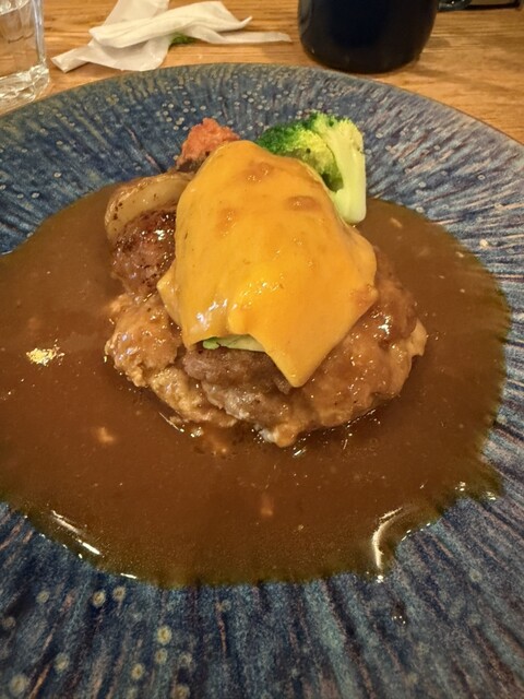 昼に伺いました!チーズデミグラスをセットでいただきました!サラダとオニオンスープはおかわり無料というとても大盤振る舞いでした。肝心のハンバーグの味もとても美味しく、満足しました!渋谷で2000円以下で...