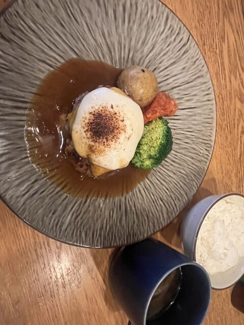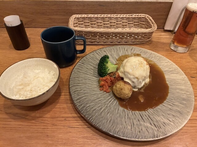 テレビで見て行きました。ハンバーグとチーズが凄く美味しかった。セットで付いてくる付属のスープもさっぱりしていて凄く美味しかったです。セットで頼むのがオススメです。店内も落ち着いていて1人でもゆっくり楽...