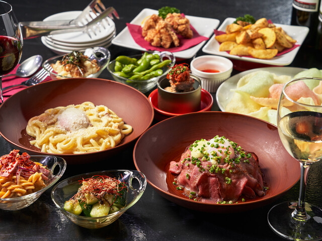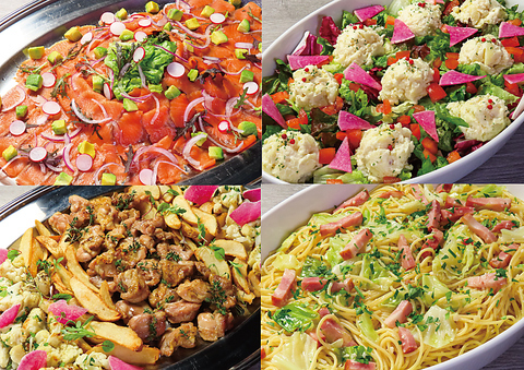 生ハム、サラダ、パスタ、グリルなど人気のパーティーメニューを楽しめます