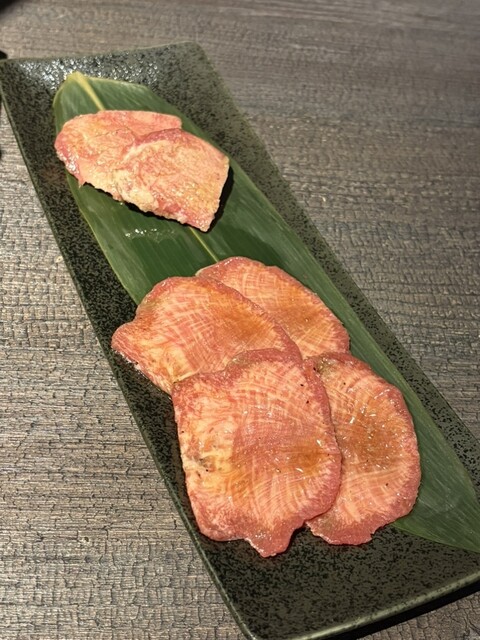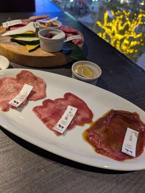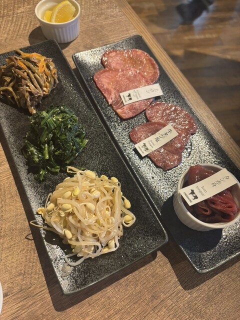 食事は4種類のキムチから始まりました。最初の焼肉はタンでした。その後す...