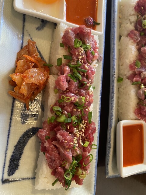 特に長いユッケ寿司は珠玉の仕上がり。
