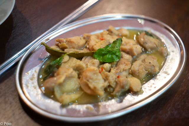 小さな土鍋にタイバジルを中心に白菜、春雨、豚肉などを具材とした鍋料理。 辛さやクセがなくてタイ料理が苦手な方でも食べやすく、姿形の愛くるしさも伴い、日本人にもウケの良いタイ料理です。