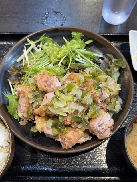 結局注文したのは、グリーンサルサザンギ定食(3個・1080円)。
