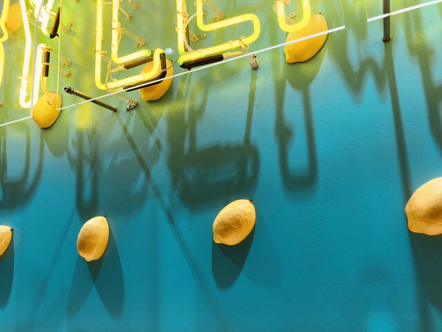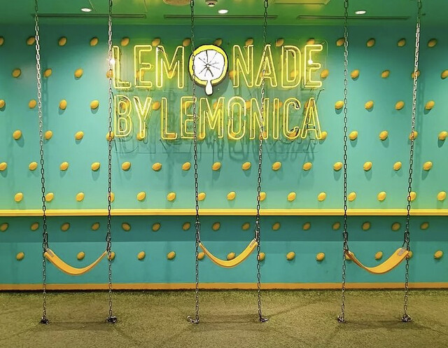 路面に見える形でキラキラしたレモンやレモネードの装飾がされていて、とっても可愛い、、、!