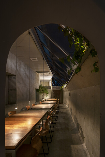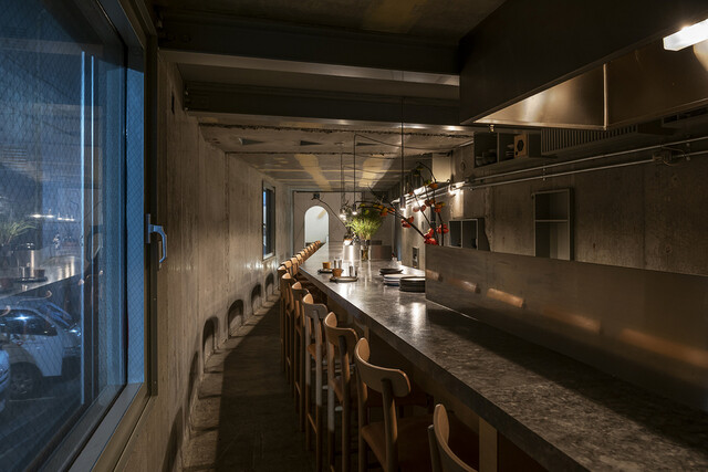 家庭料理にひと工夫加えた食事を、都心の喧騒を抜けたコンクリートの一軒家で。