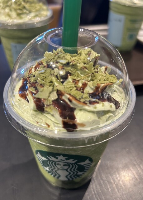 12月下旬新作の玉露抹茶フラペチーノ(700円)を注文しました。ホイップクリームまで抹茶で抹茶好きにとって最高でした。カスタムでチョコレートソースもトッピングしました。アクセントとなって美味しかったです。