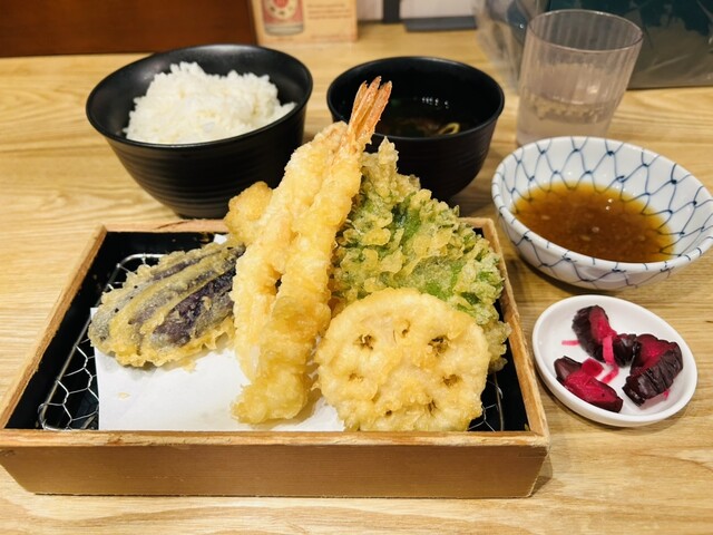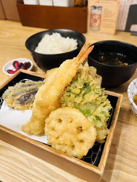 日曜日19:30頃に腹ごしらえのため、渋谷パルコ地下B1Fをふらふら。外の立看板メニューを見ると、定食や丼が1,500円前後でずいぶんお得だな…と思い、周りには大行列のお店がある中、天ぷら大好き、空いていたので入店しました。
