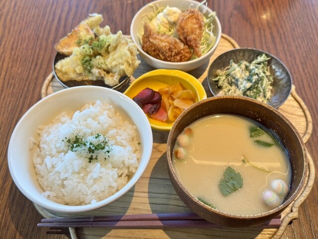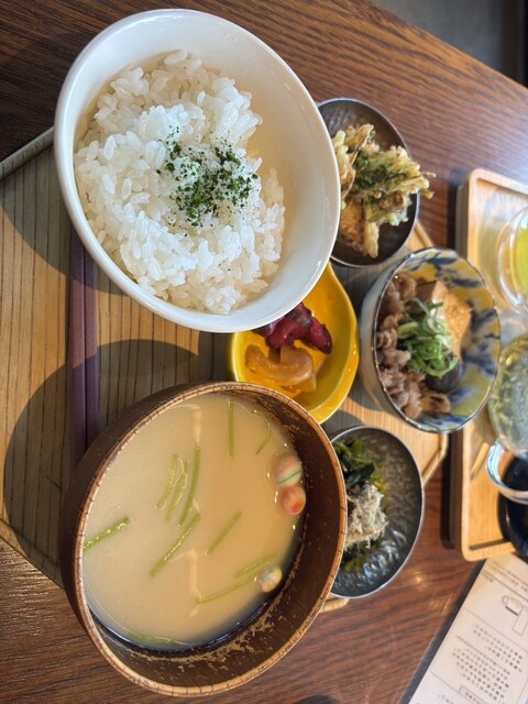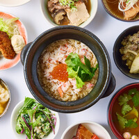 一つ一つ丁寧に炊き上げた季節の羽釜ごはんと 季節によりかわるおばんざいのお食事。 食後にはバスクチーズケーキ。 食事、甘味に合わせて本日の宇治茶をお愉しみ頂けます。