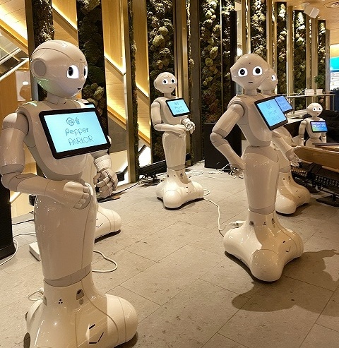 ソフトバンクが手掛けるpeppar 君を始めロボットスタッフと人間が一緒に働いています。peppar君が踊って、歌って、サービスをするエンターテイメントレストランです。