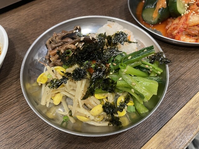 ・自家製キムチとナムルの盛り合わせ 韓国海苔付き ⏩まずなーにが嬉しいって キムチもナムルも 一人一皿ずつってのが ありがたい 一人前にしては どちらもちゃ... 詳細を見る