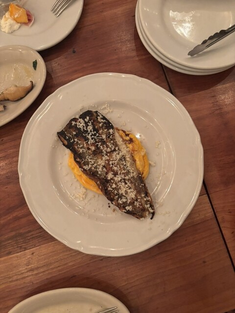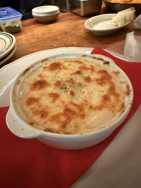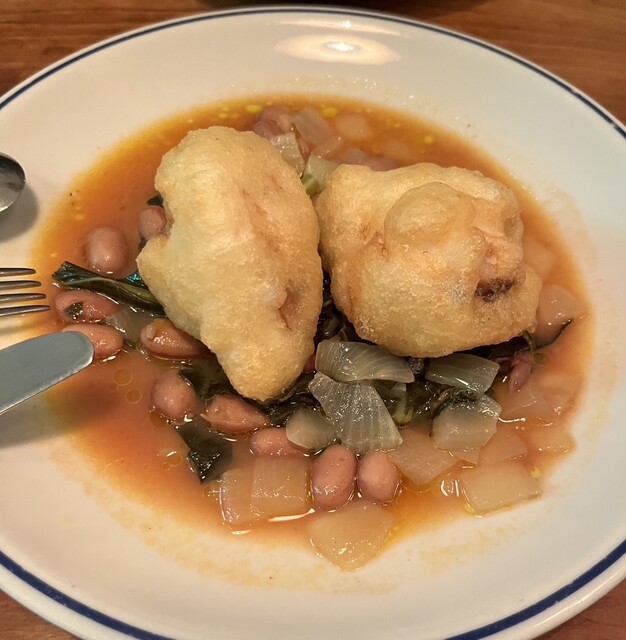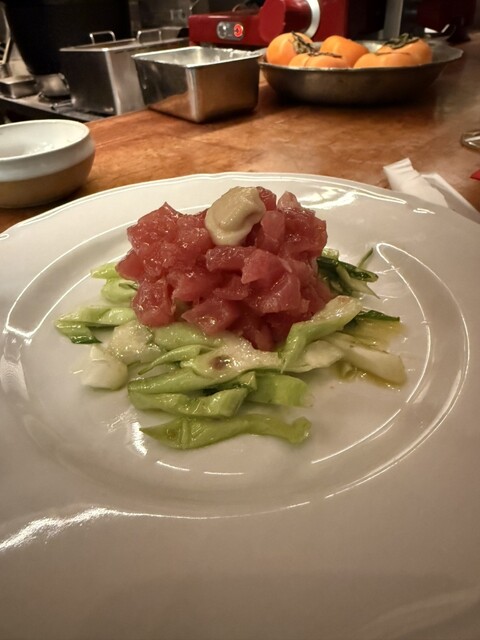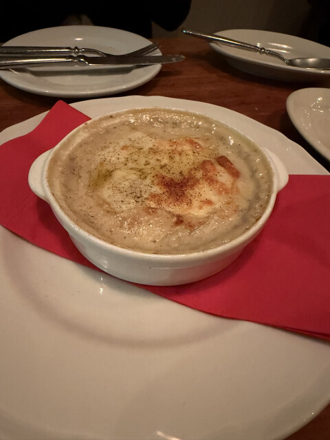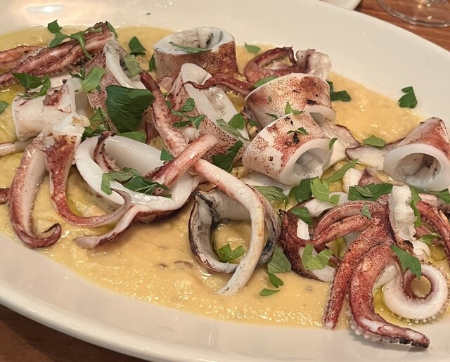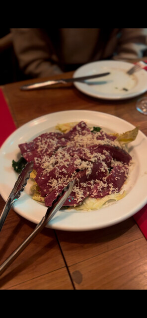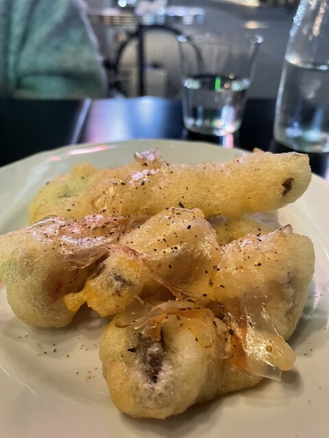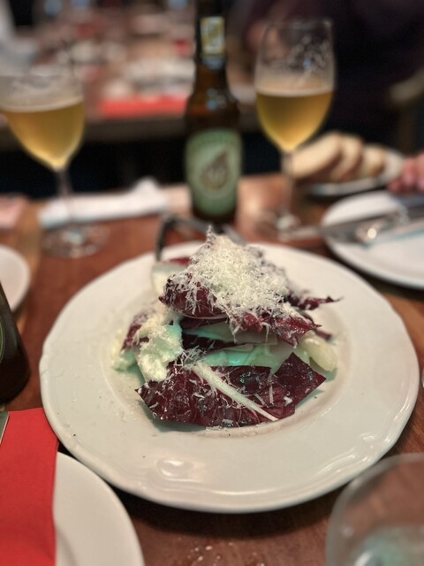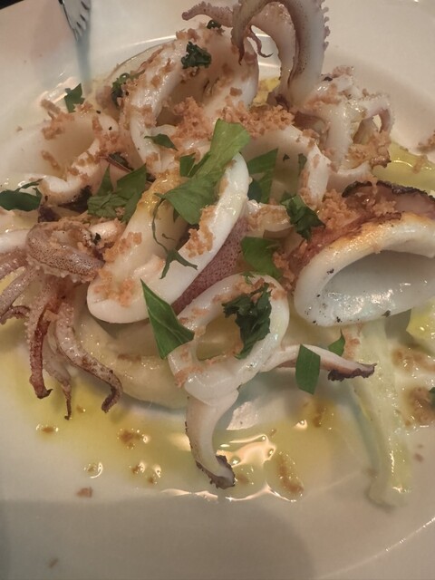 活気のあるイタリアンレストラン。週末は混むようですね。席が狭いので、ゆっくり話ができる感じではないですが、ガヤガヤ楽しむには良さそうです。お料理もそこそこに美味しく、ただワインは少々残念。頼んだスパー...