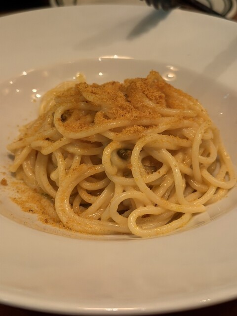 女子会で予約しました!!ずっと気になってて、ワインとパスタ目当てで訪問しました!!平日なのにほぼ満席!女子会デートいろんな人が使ってました☺️メニューは黒板から選ぶ方式!どれもハズレなし!美味しかったです