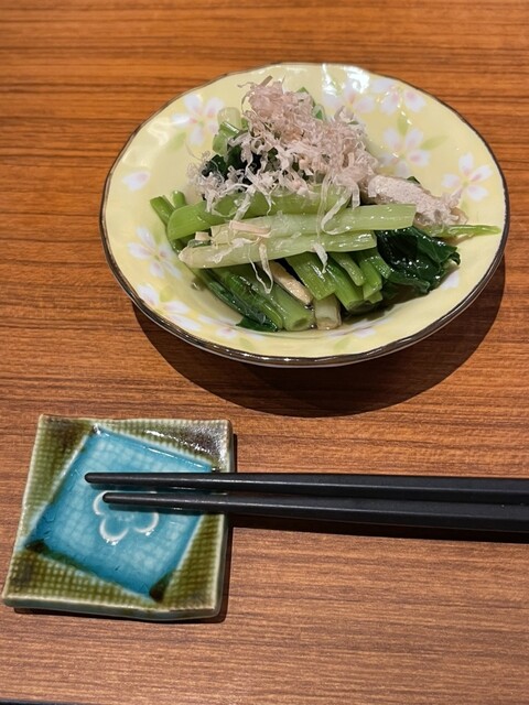 雨降る寒い土曜日、暖簾がかかり、行燈に明かりが灯る開店とともにお店に入りました。 この日、お通しが菊のお浸しで、心がキュンとなりました。 地元のなじみの家庭料理であることに... 詳細を見る