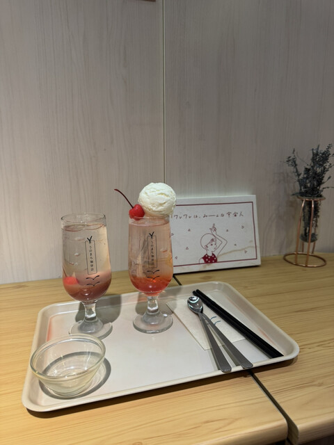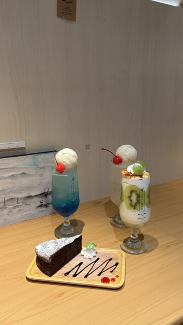 日曜日の13時ごろ伺いました。丁度満席になってしまったタイミングでしたが、10分ほどで案内して貰えました。店内は落ち着いた雰囲気で、静かすぎず、けれど煩くもなく心地よい空間でした。クリームソーダを注文...