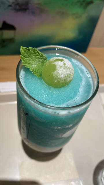 出て来た、映えのすりラッシーは、青リンゴのシャキシャキしたフローズン♪少し甘酸っぱい感じで、底にはプレーンのヨーグルト‼️別々に飲むと、ヨーグルトがプレーンのようで酸っぱいです。混ぜた方...